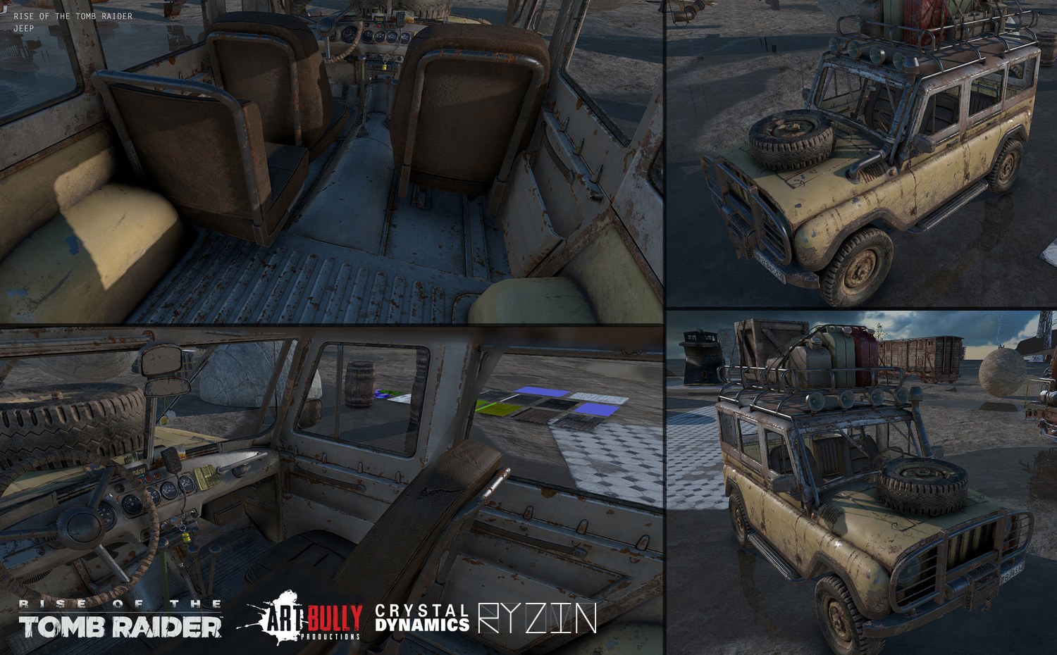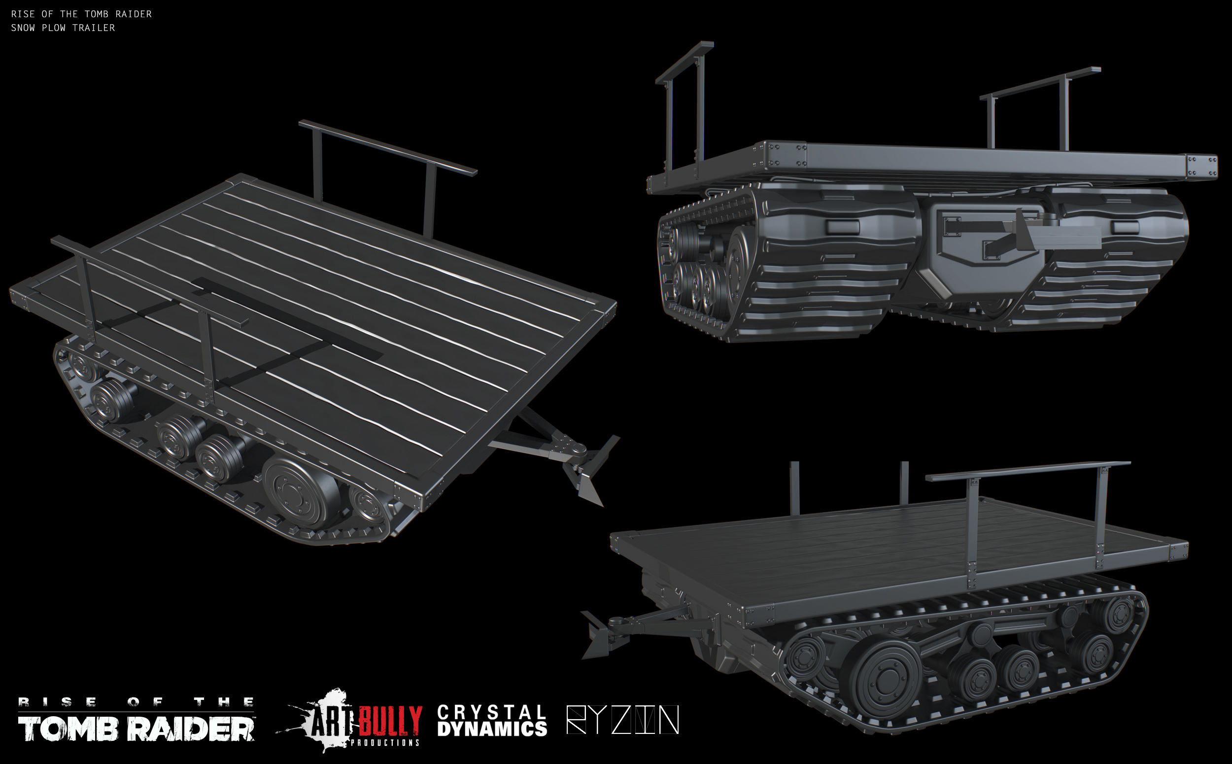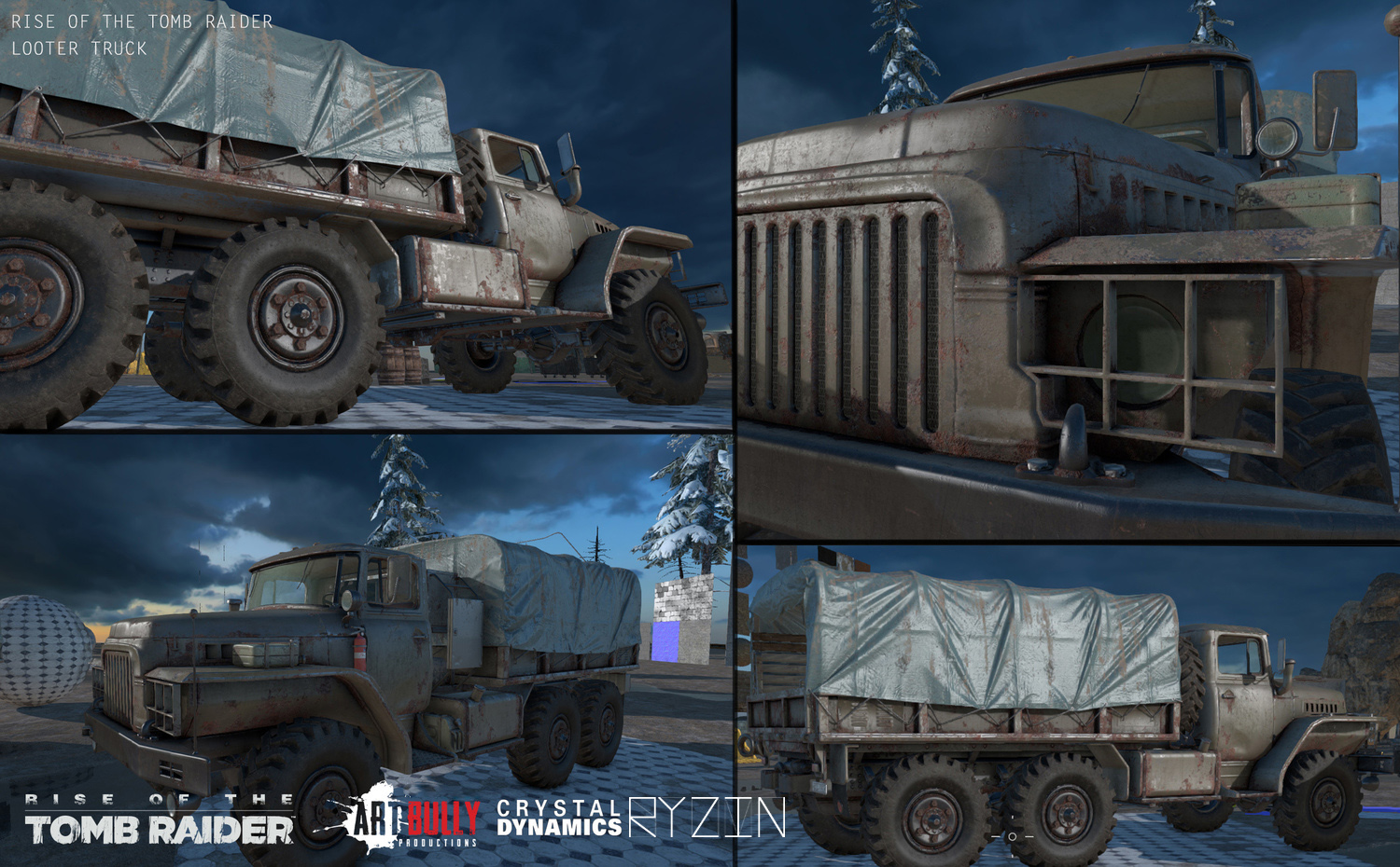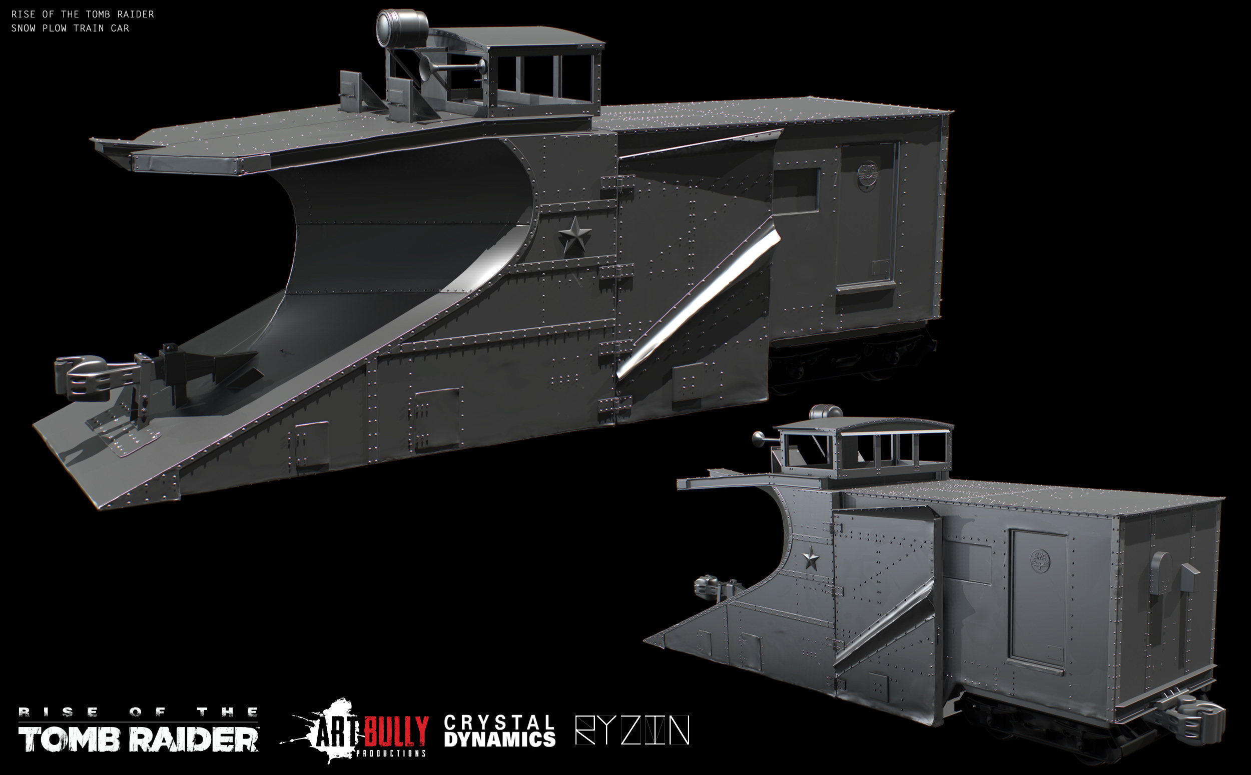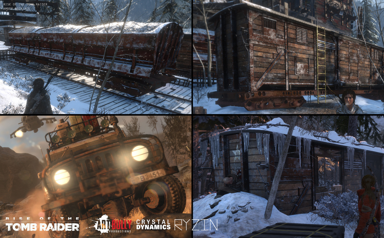 In game vehicle, weapon, prop, and environment assets created for Rise of the Tomb Raider, by Crystal Dynamics