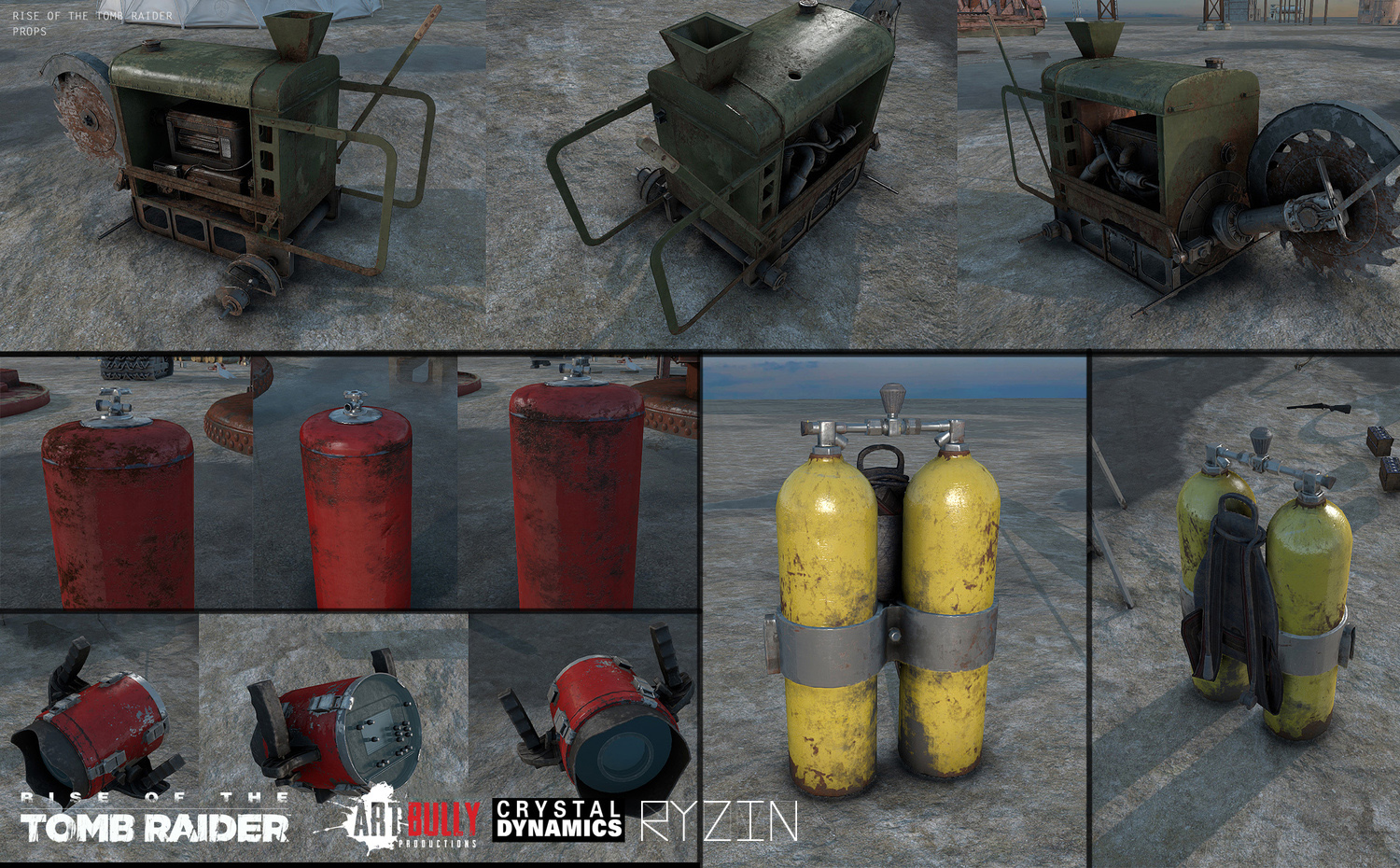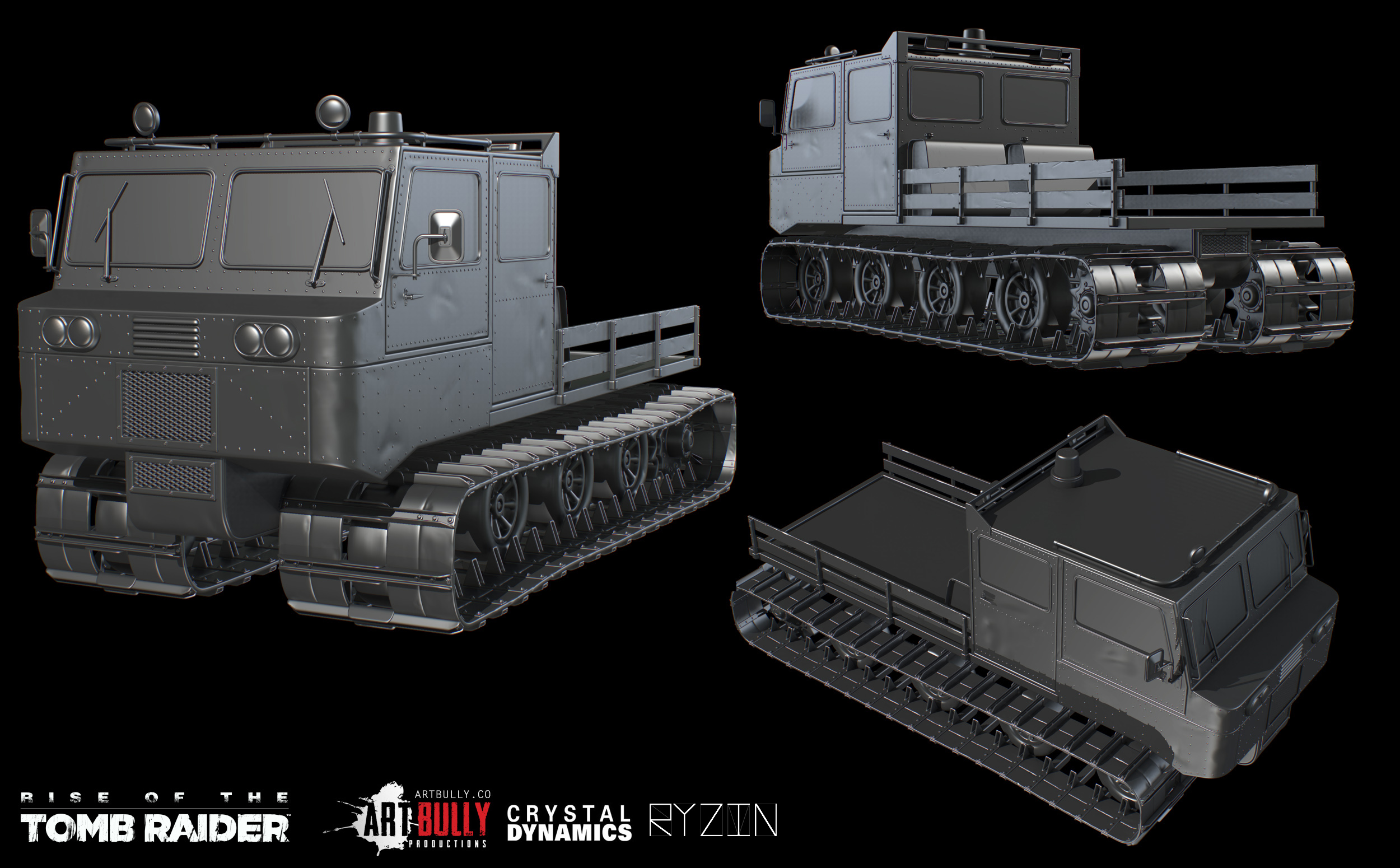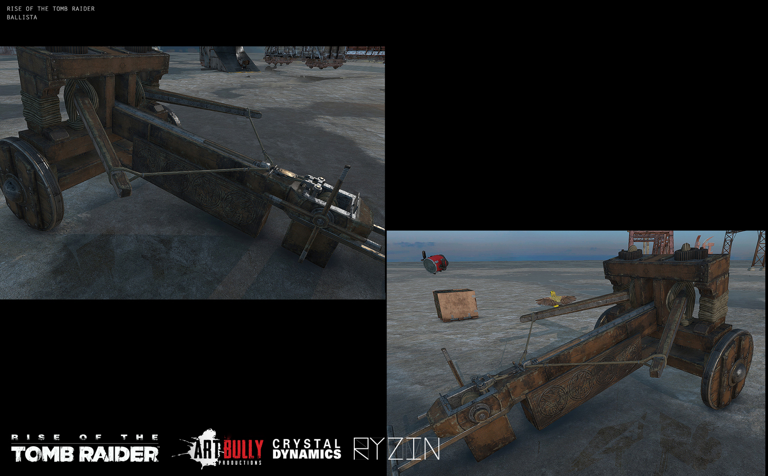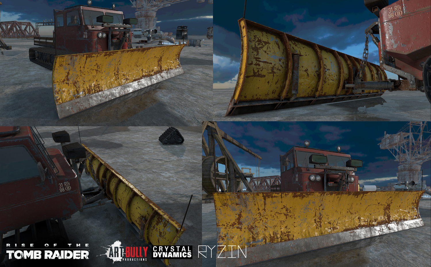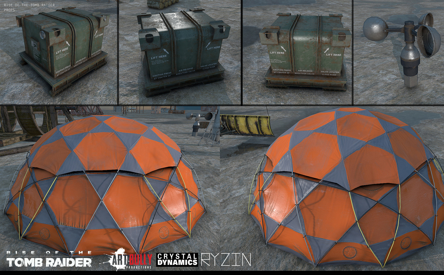 In game vehicle, weapon, prop, and environment assets created for Rise of the Tomb Raider, by Crystal Dynamics