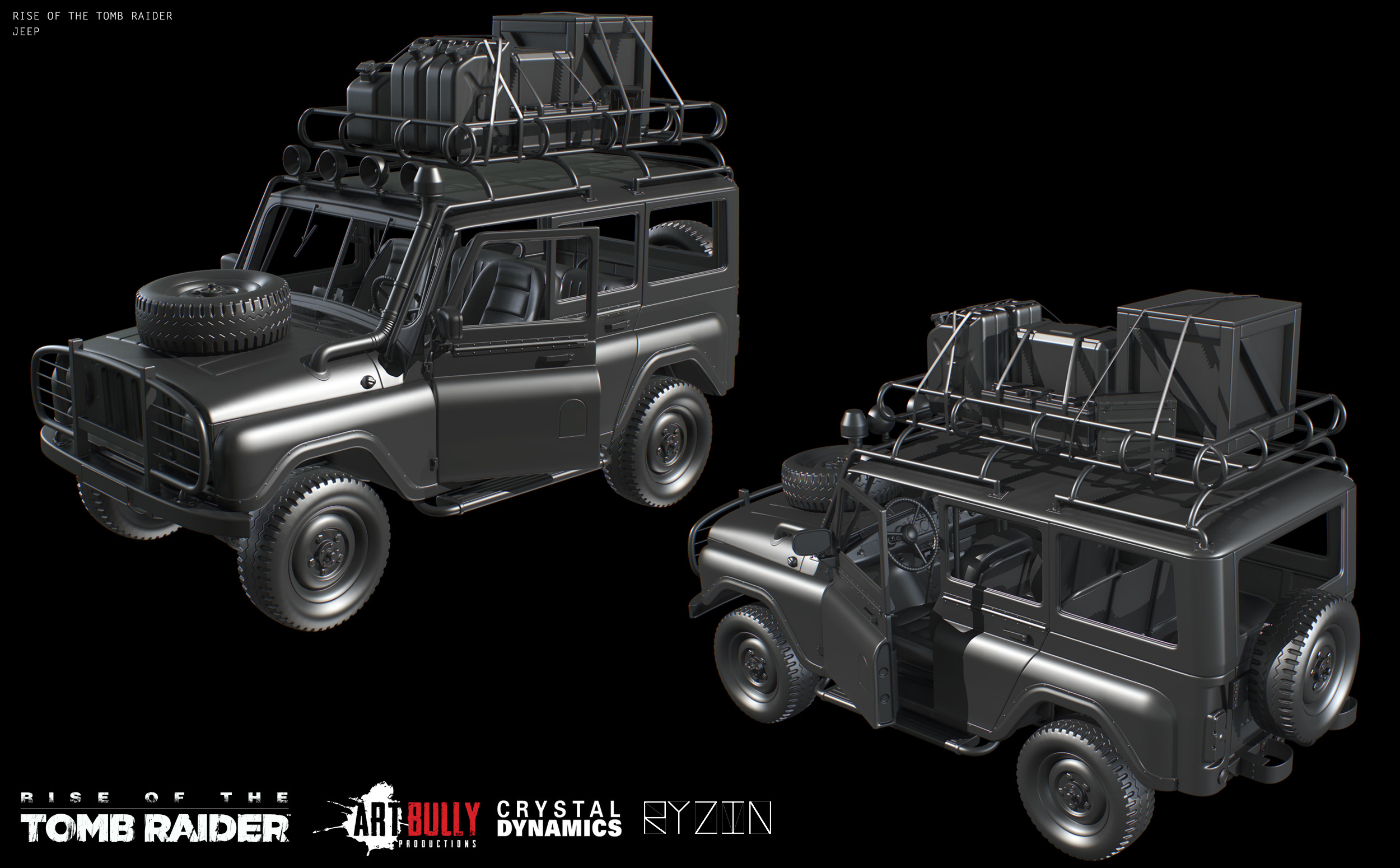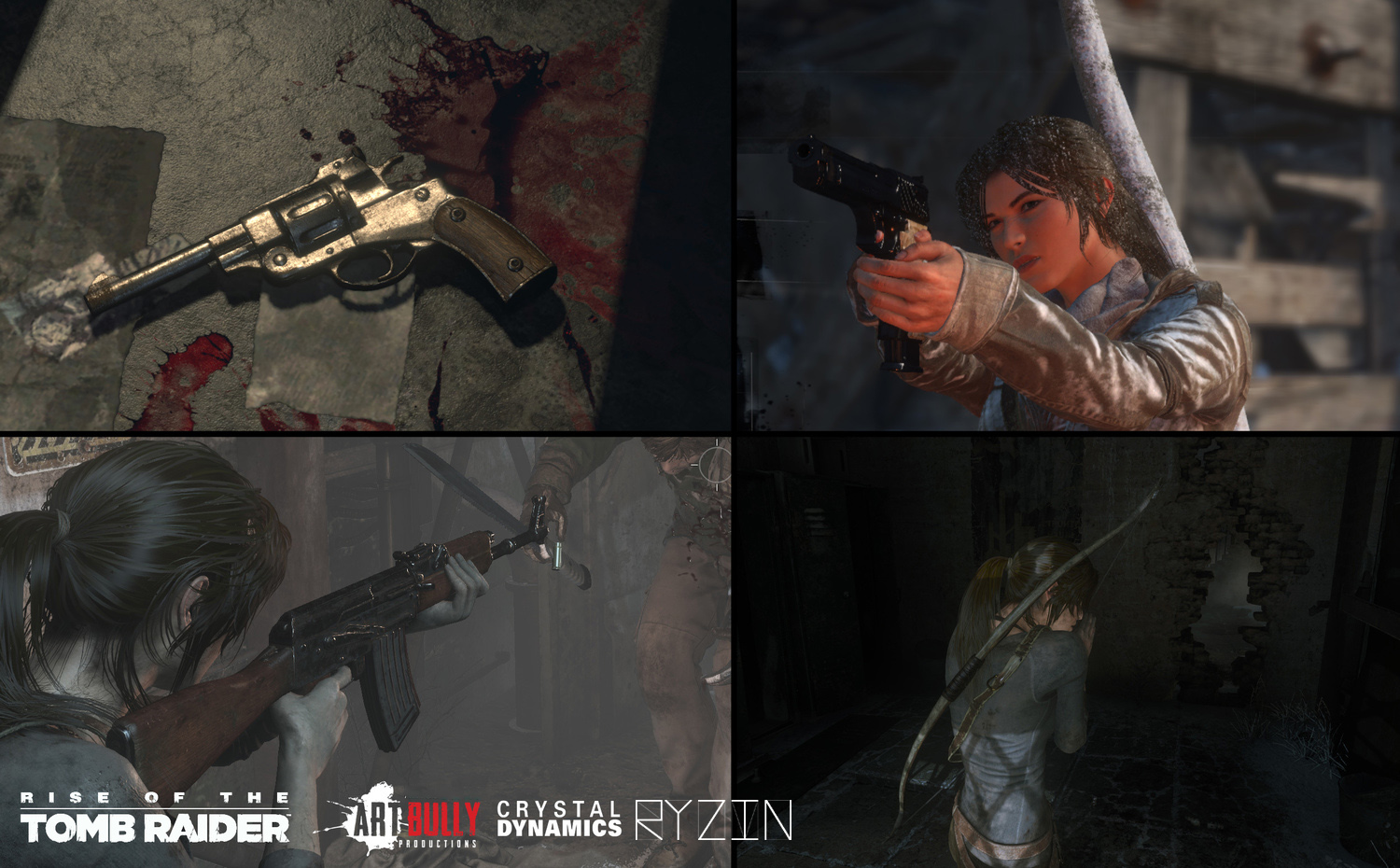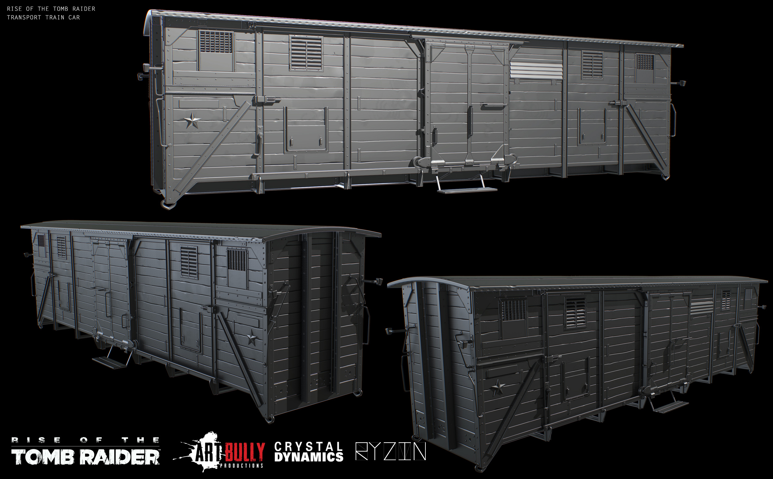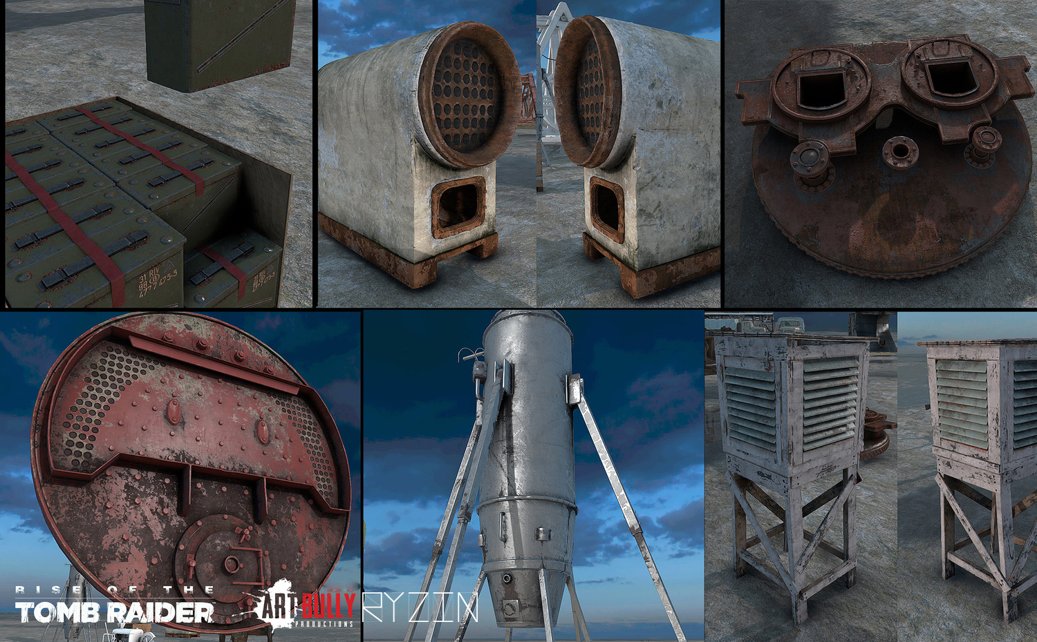 In game vehicle, weapon, prop, and environment assets created for Rise of the Tomb Raider, by Crystal Dynamics
