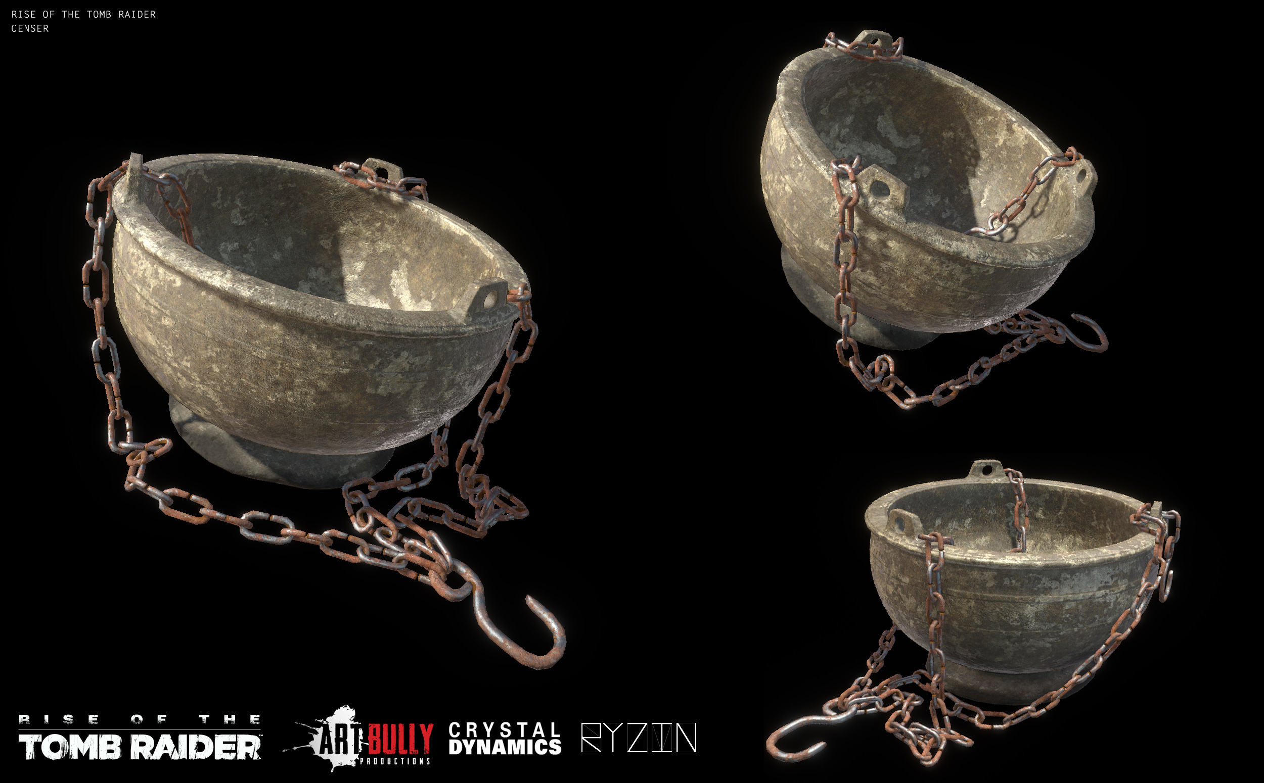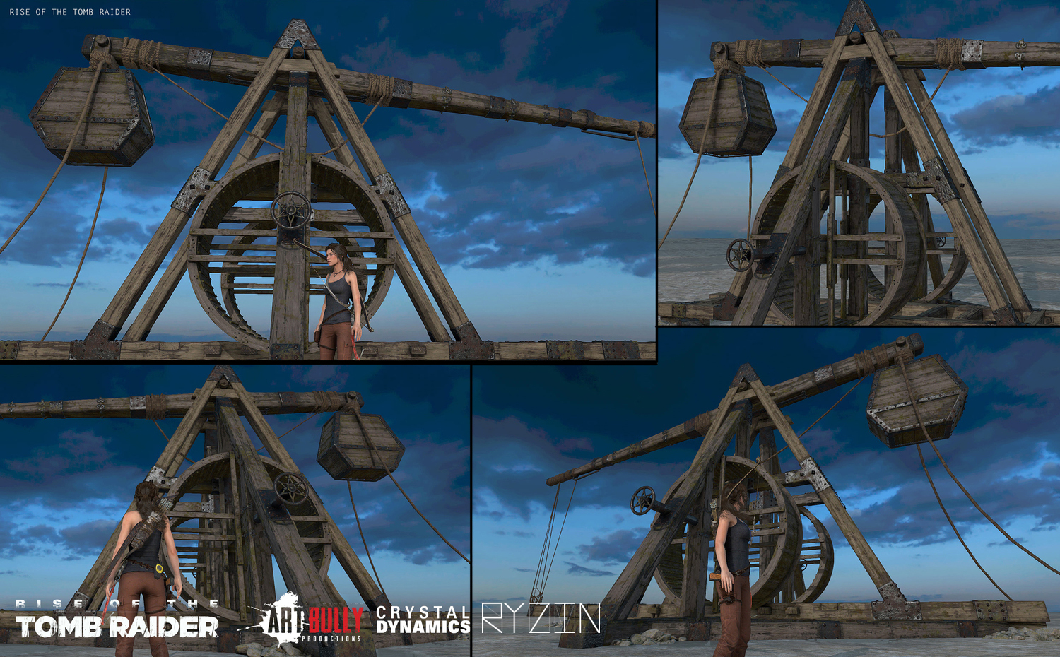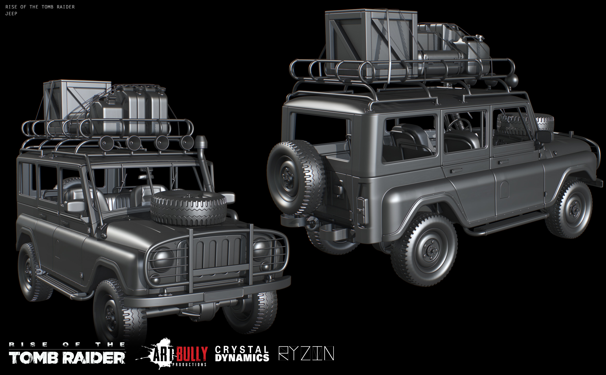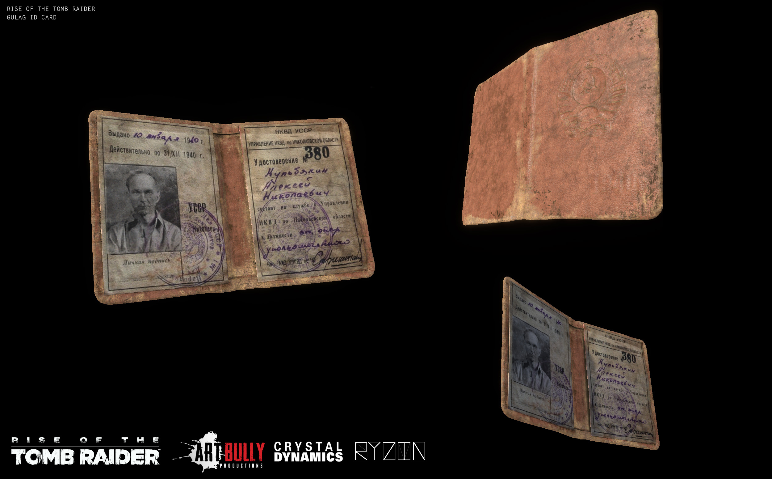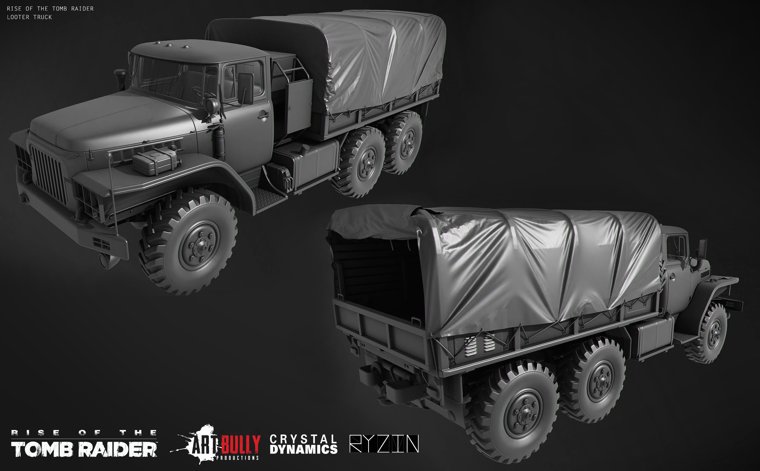 In game vehicle, weapon, prop, and environment assets created for Rise of the Tomb Raider, by Crystal Dynamics