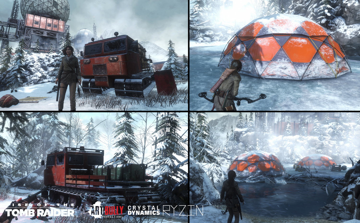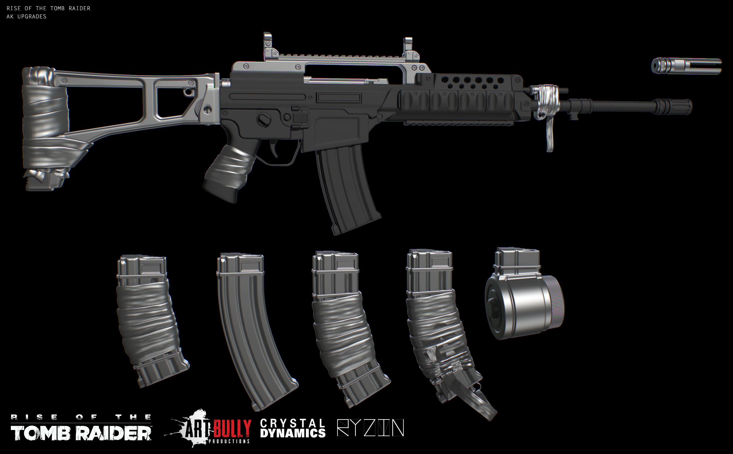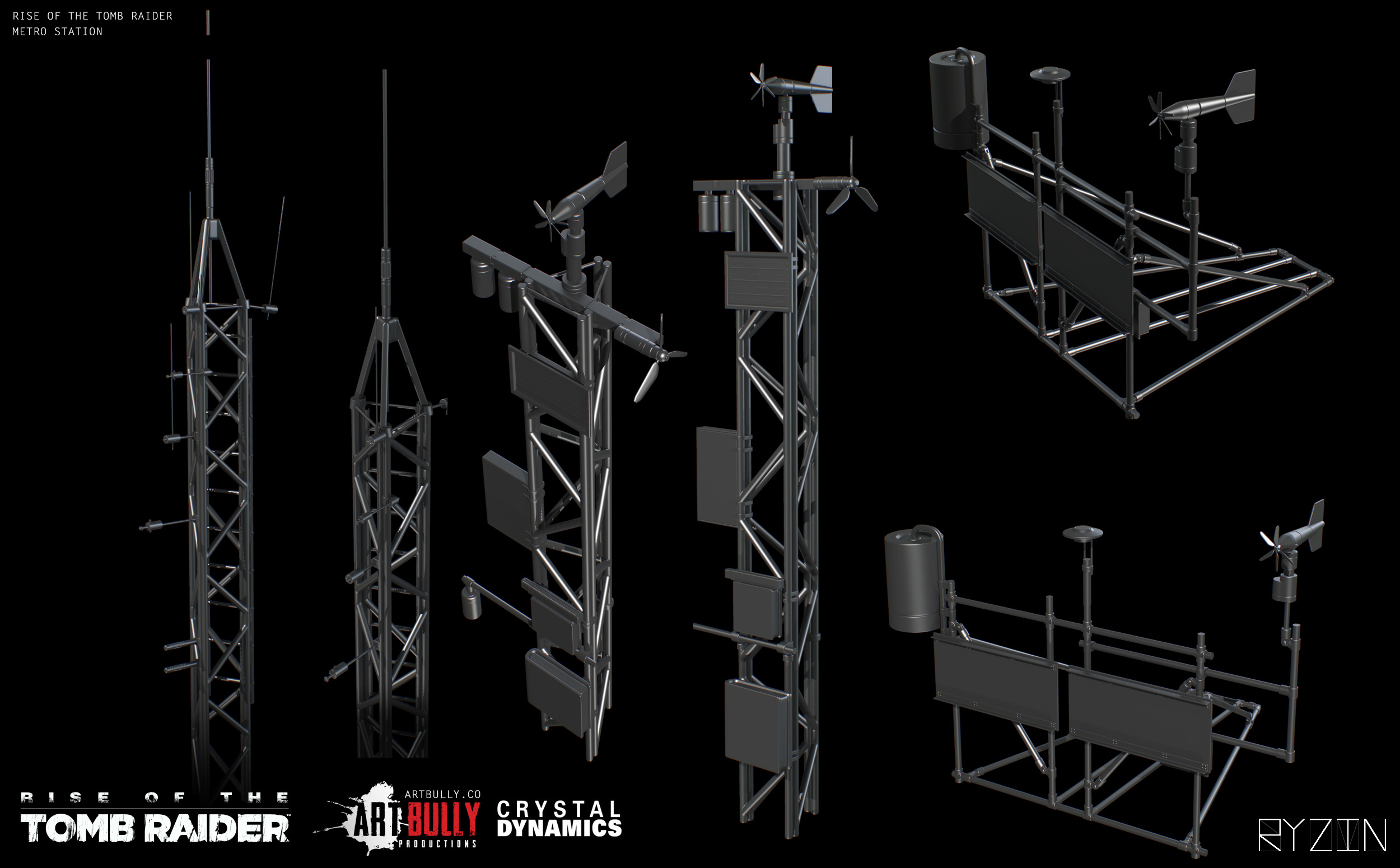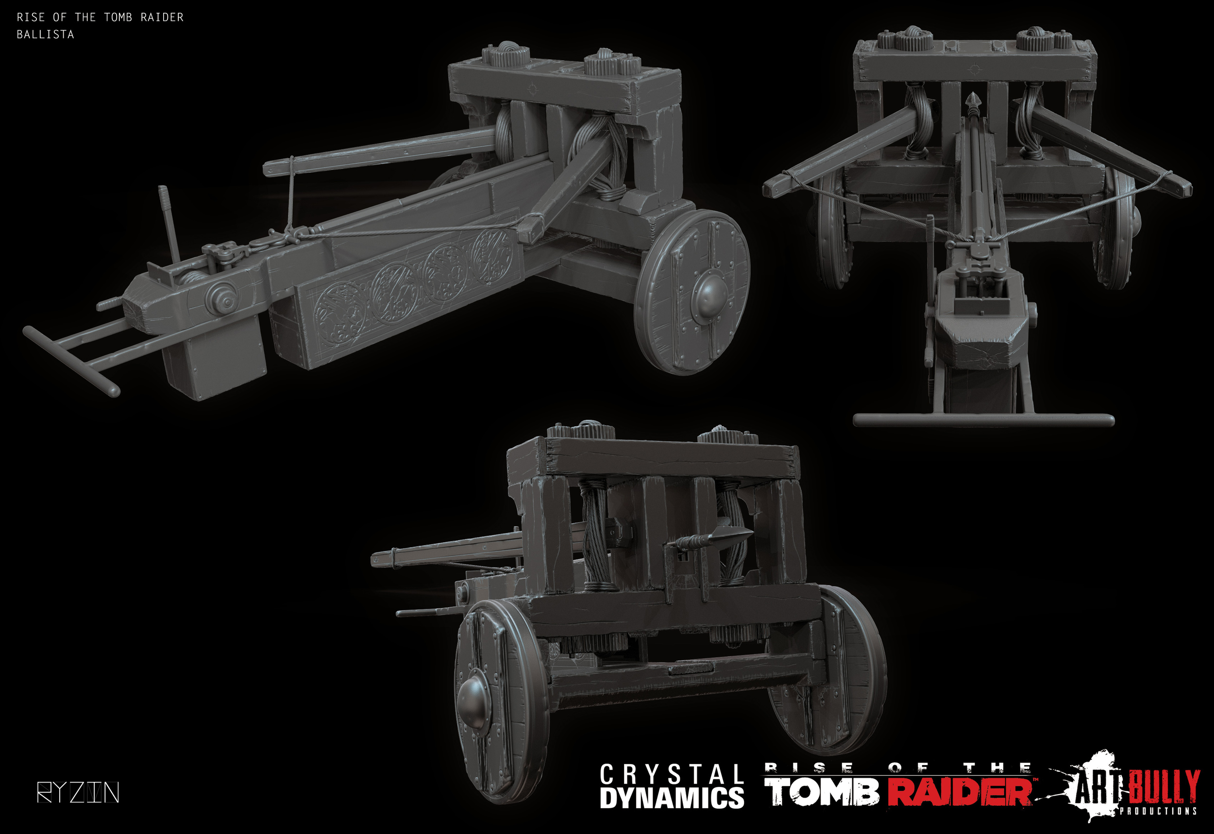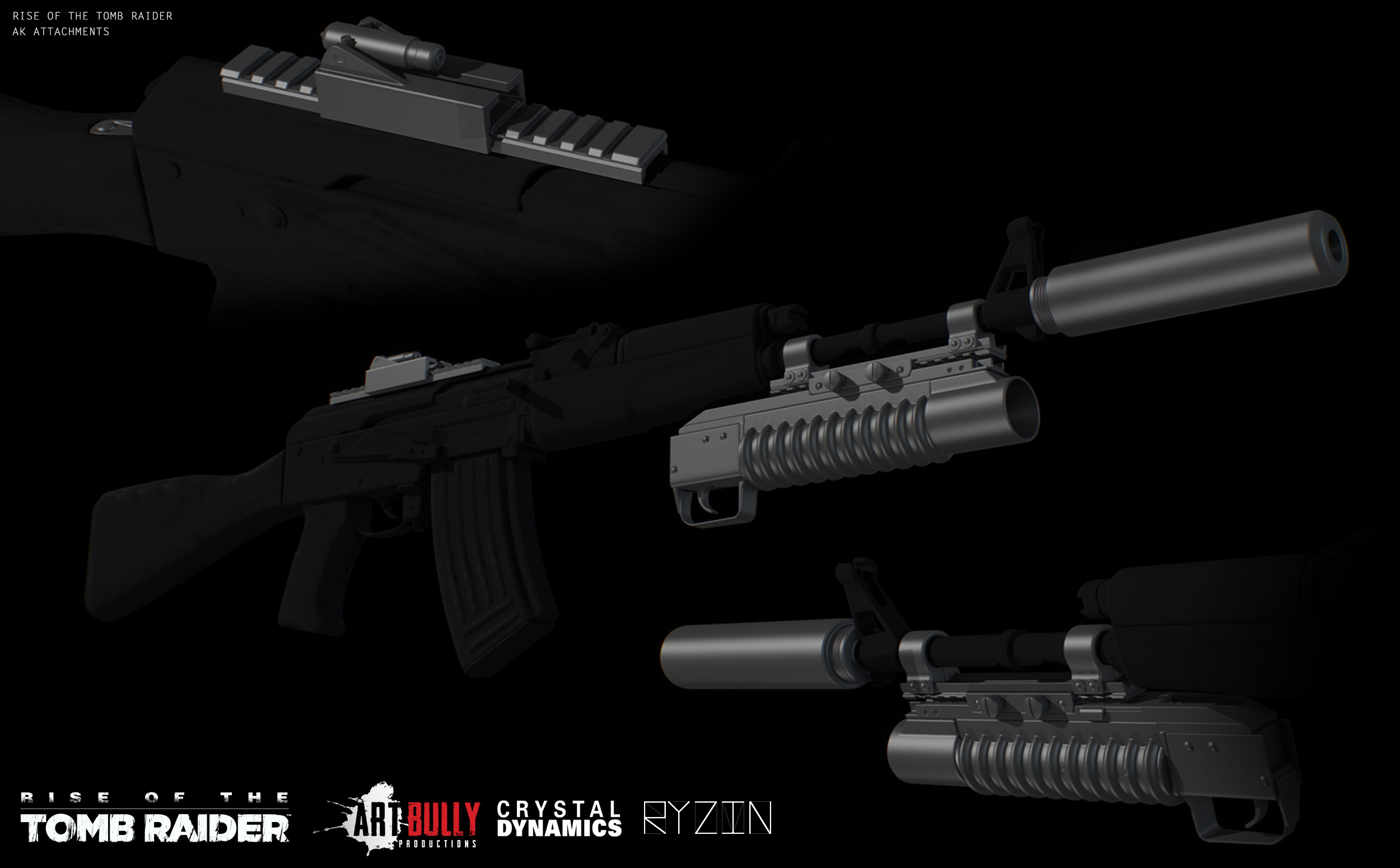 In game vehicle, weapon, prop, and environment assets created for Rise of the Tomb Raider, by Crystal Dynamics