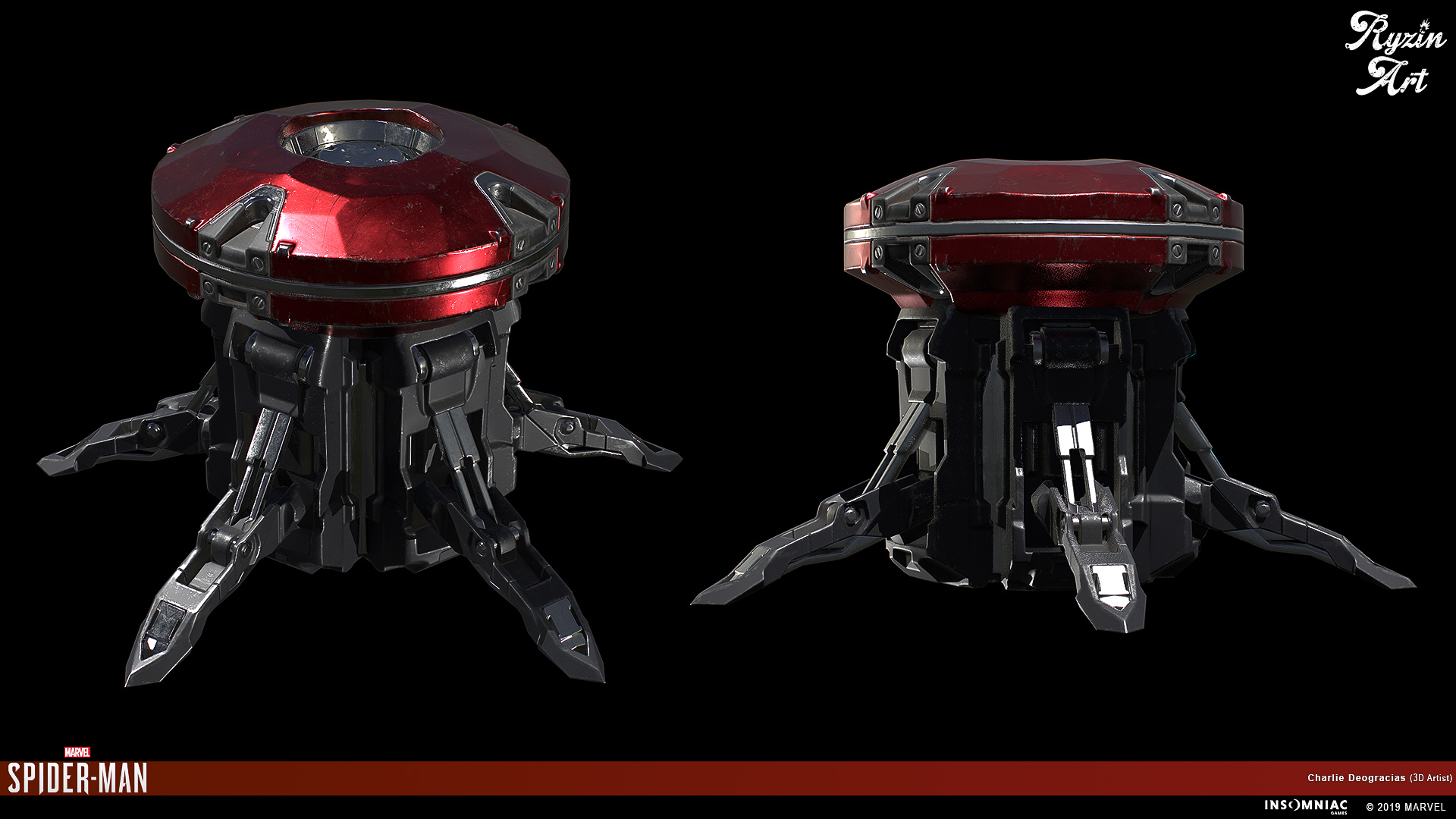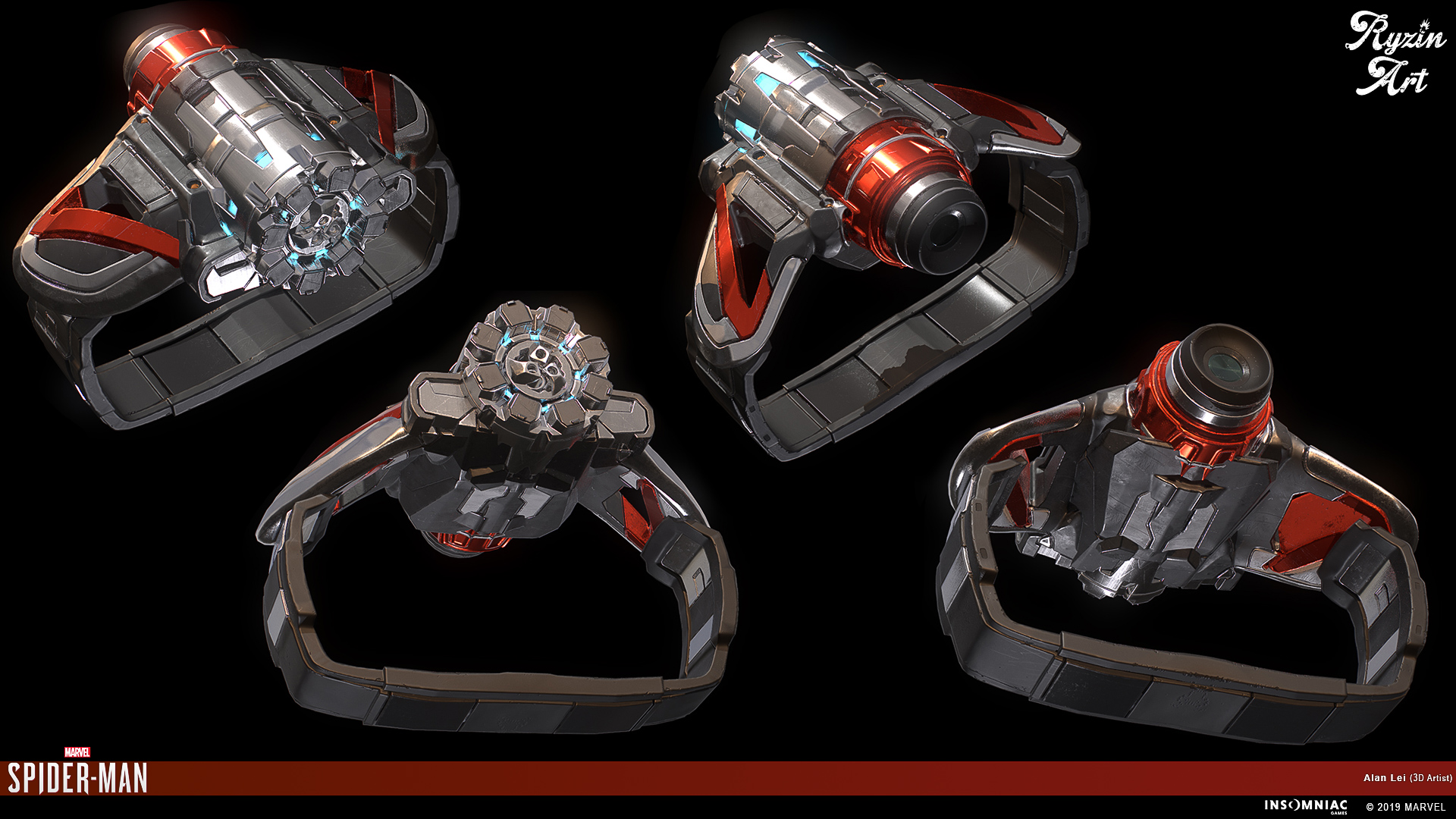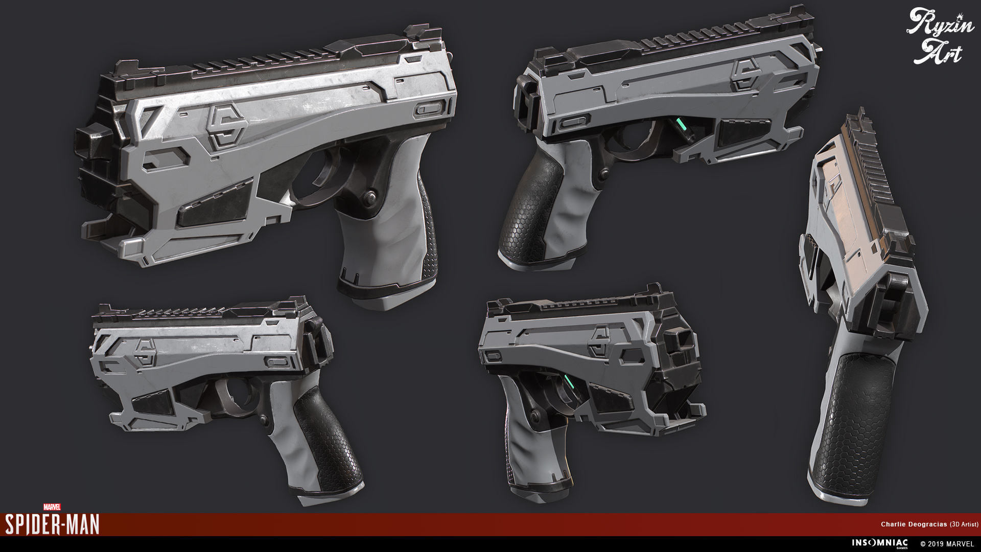 In game weapon, gadgets, and prop assets created for Marvel Spider-Man, by Insomniac Games.