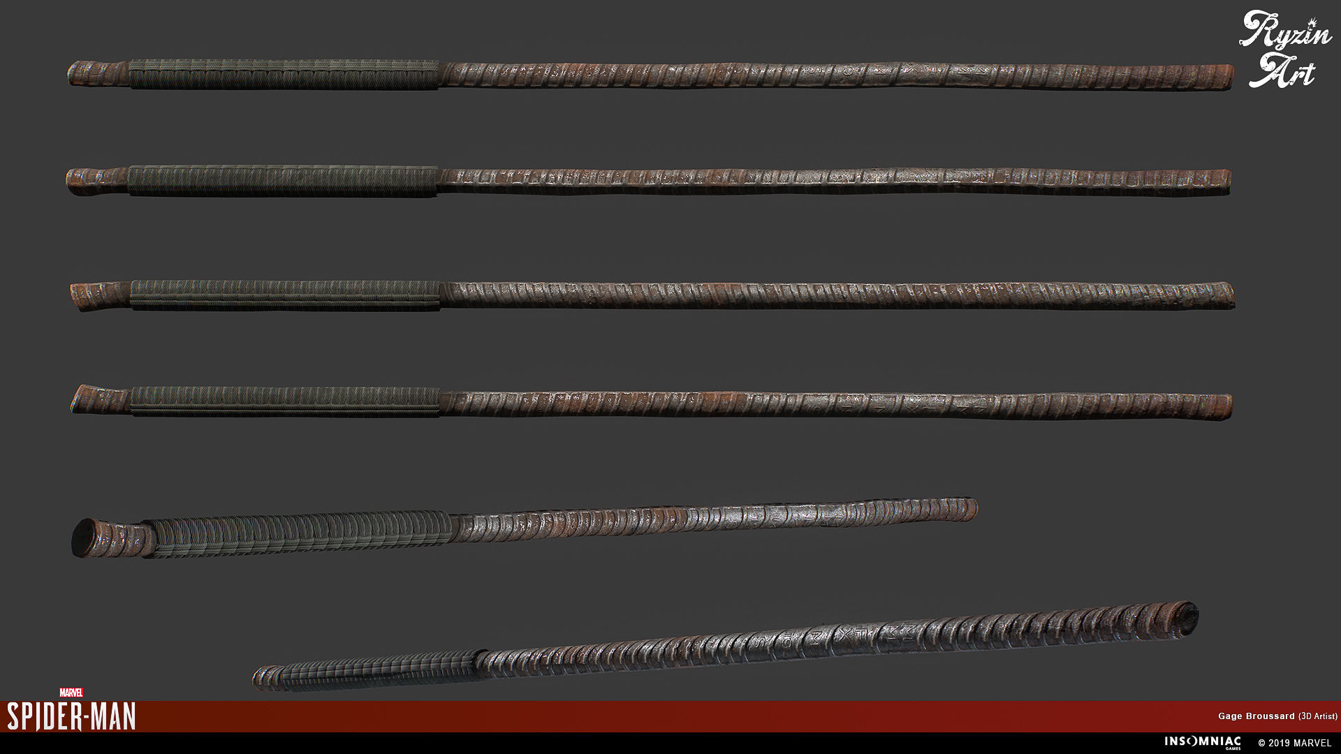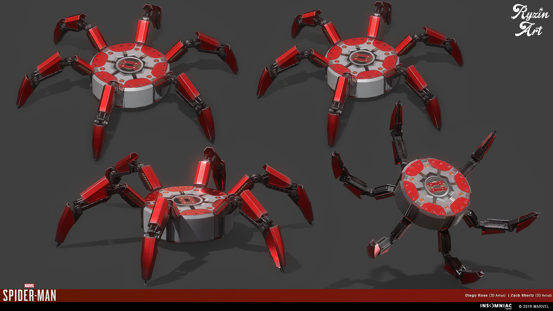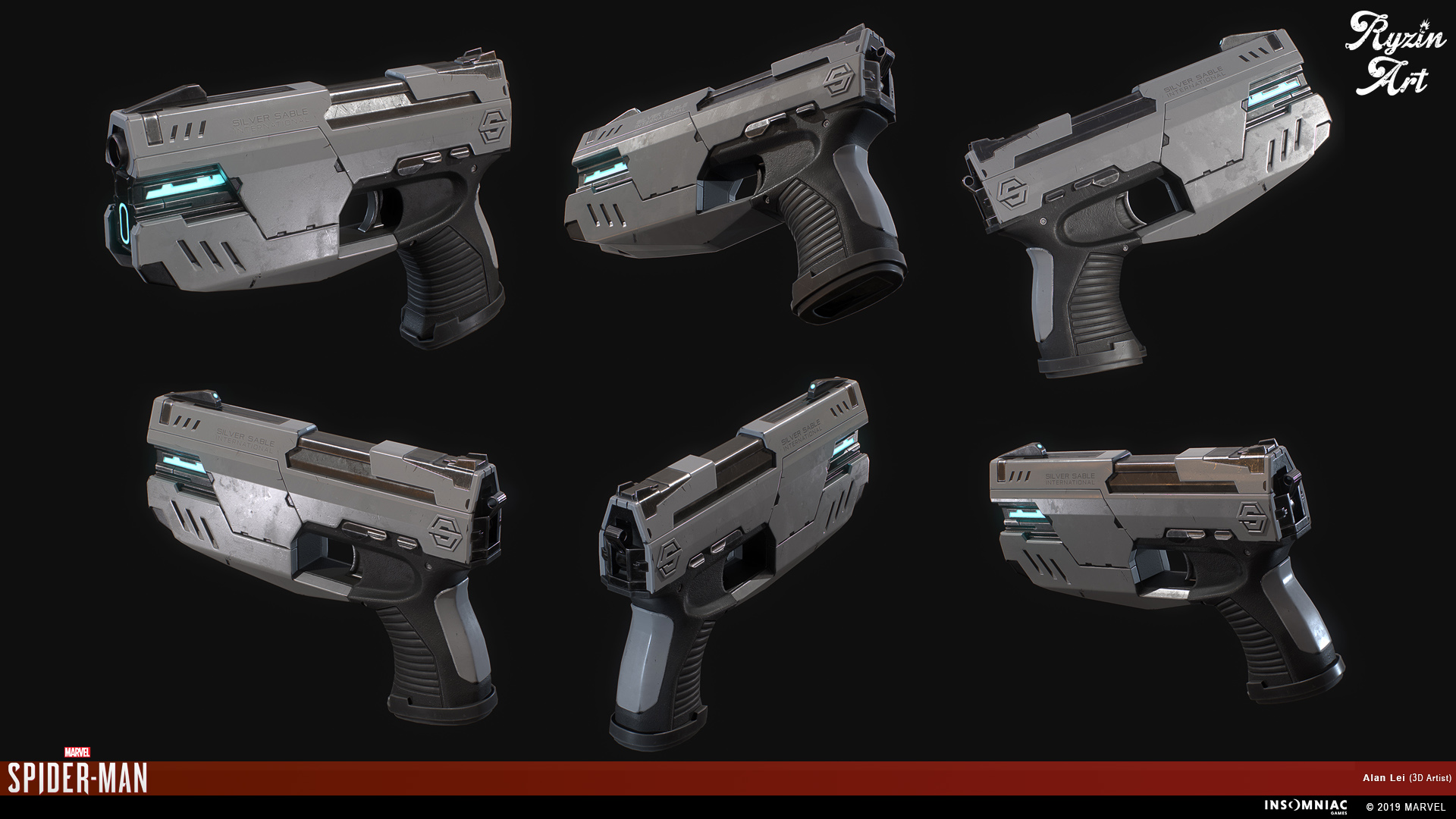 In game weapon, gadgets, and prop assets created for Marvel Spider-Man, by Insomniac Games.